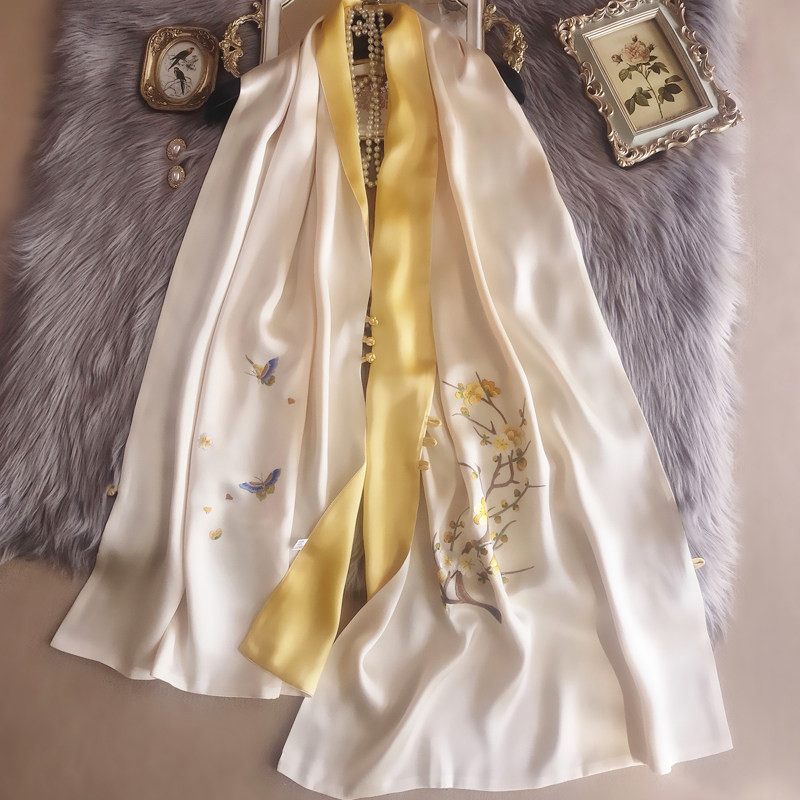Spring and autumn high-end heavy Suzhou embroidery silk buckle shawl with cheongsam and mulberry silk scarf hand-embroidered double-sided