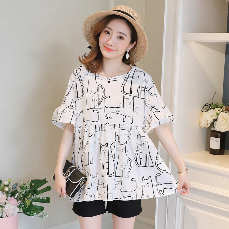Pregnant woman suit Summer Fashion Chauma 2020 new fashion models Korean version Horn Sleeve Doll Blouse Shorts Two Pieces