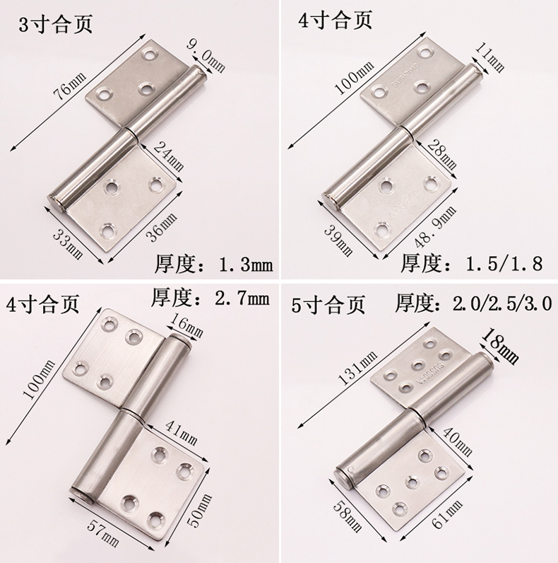 Stainless steel thickened flag-shaped hinge 3 inch 4 inch 5 inch welded door hinge fireproof door anti-theft wooden door tear down hinge