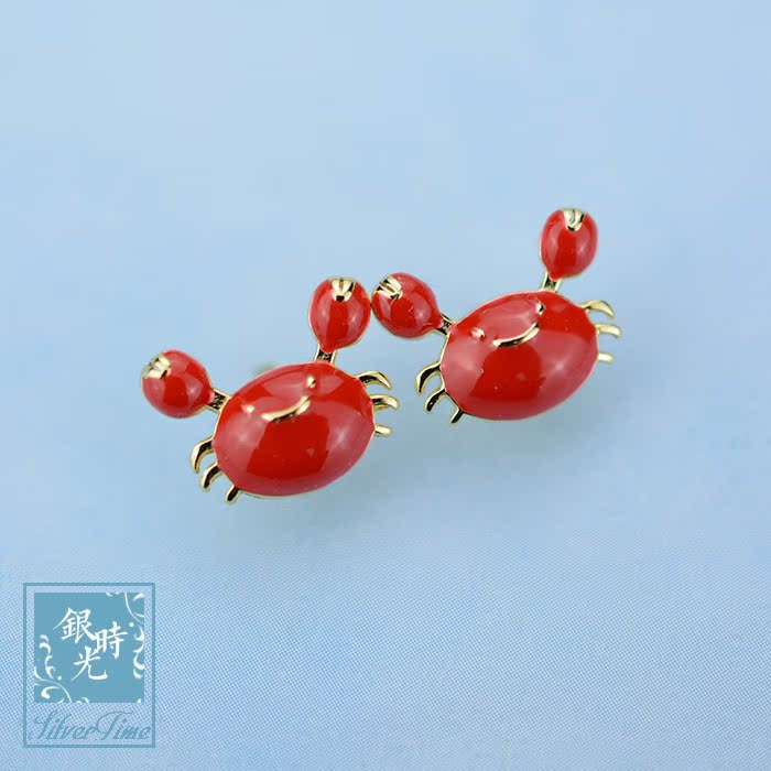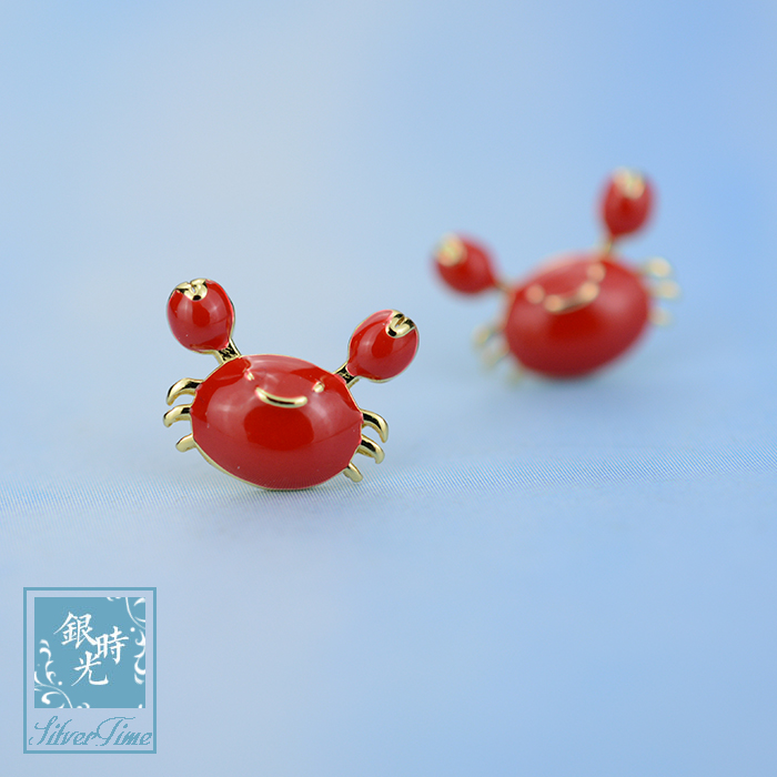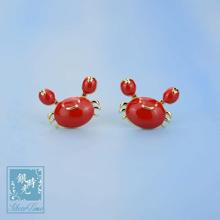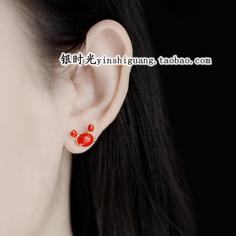 Silver time S925 pure silver earshot baking lacquered red small crab earrings Fashion personality Giant Crab Seat Earrings