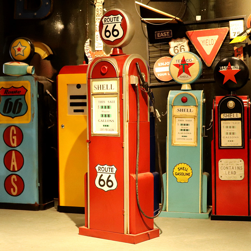 Retro Style Iron Sheet Refueling Machine Model Bar Coffee Hall Swing Piece Decorations Shooting Props Creative Storage Cabinet