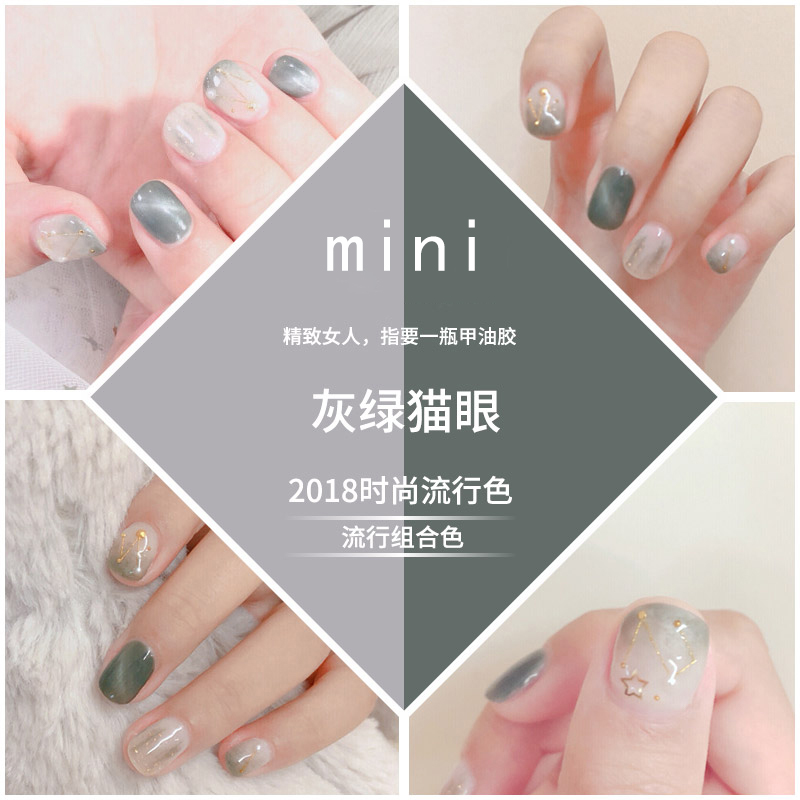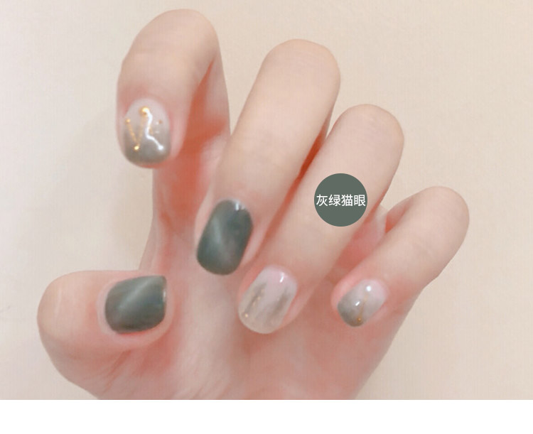 Smeared green cat eye nail polish grey green cat eye 2022 new net red small red book the same beauty nail pop color glue