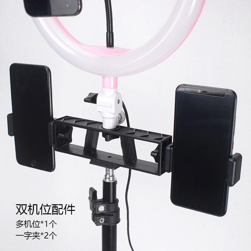 Mobile phone live broadcast bracket Tripod clip head accessories sound card tray fixed rotating gimbal microphone microphone stand double three-position flat clip fill light multifunctional bluetooth universal adapter clip
