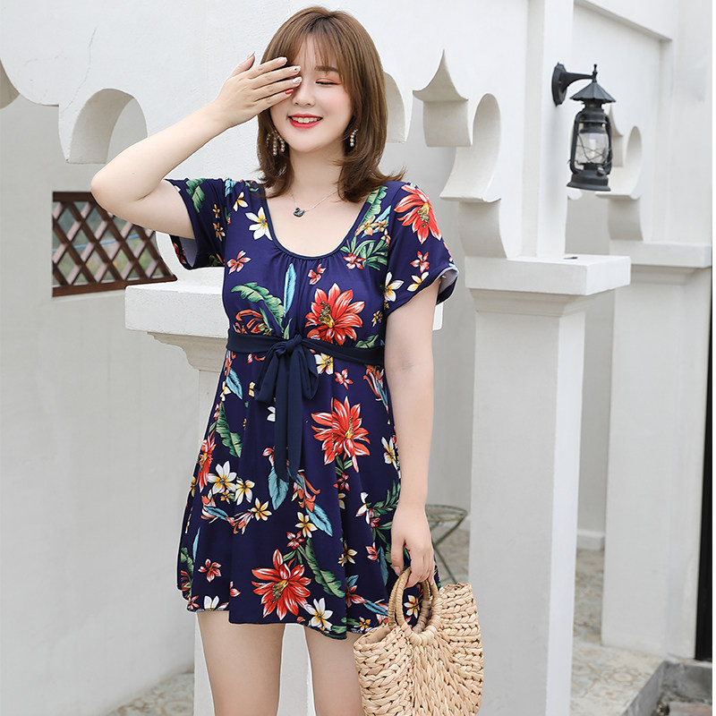 Mid-age swimsuit women's two style large size hot springs Fat mm loose Sexy conservative dress style Conspicuic Slim mom Covered Belly