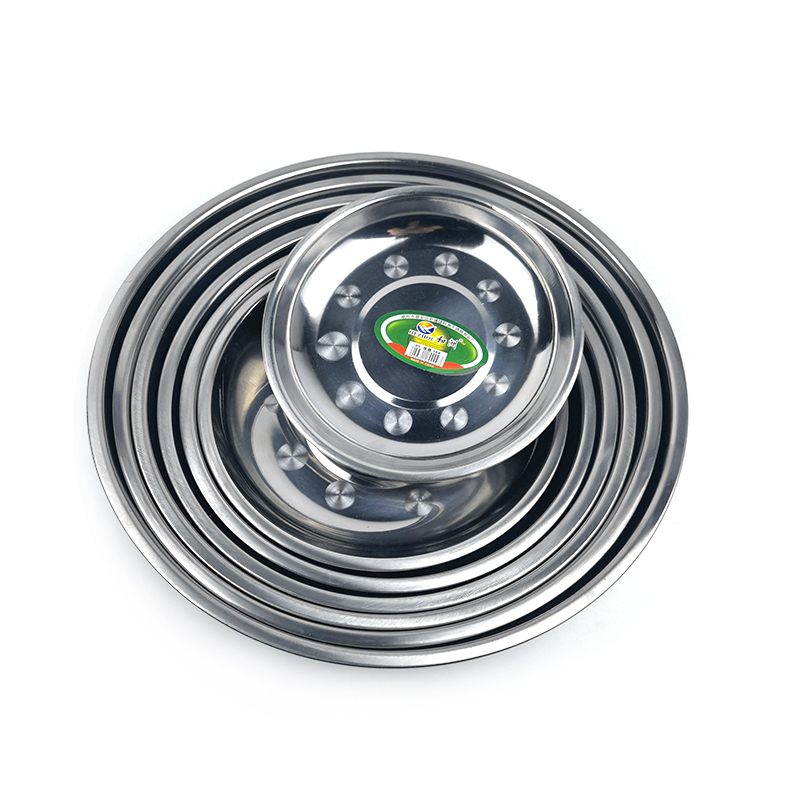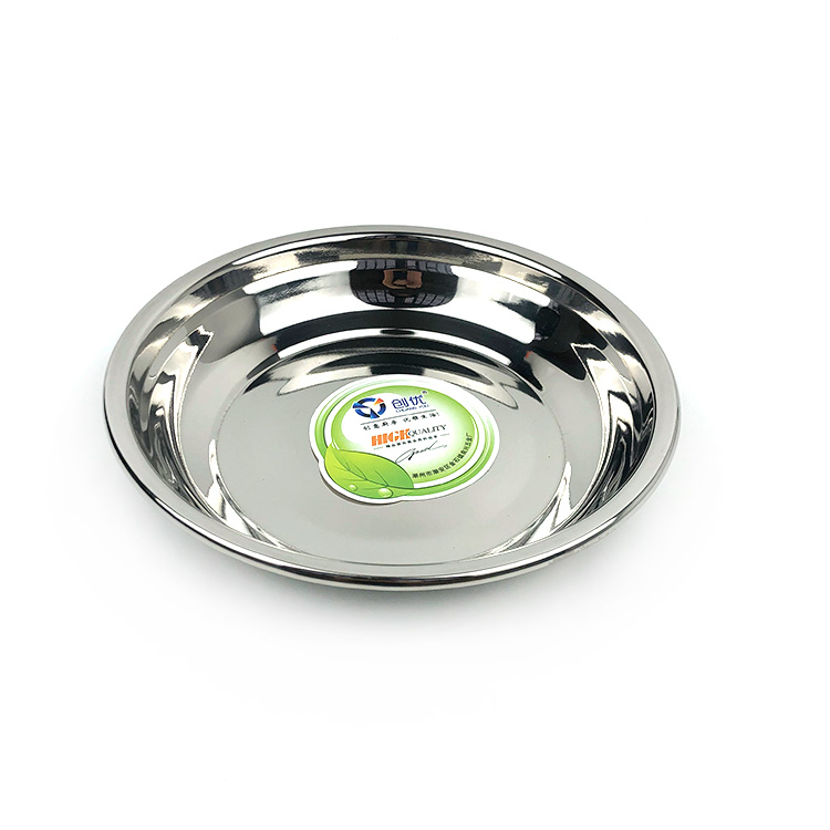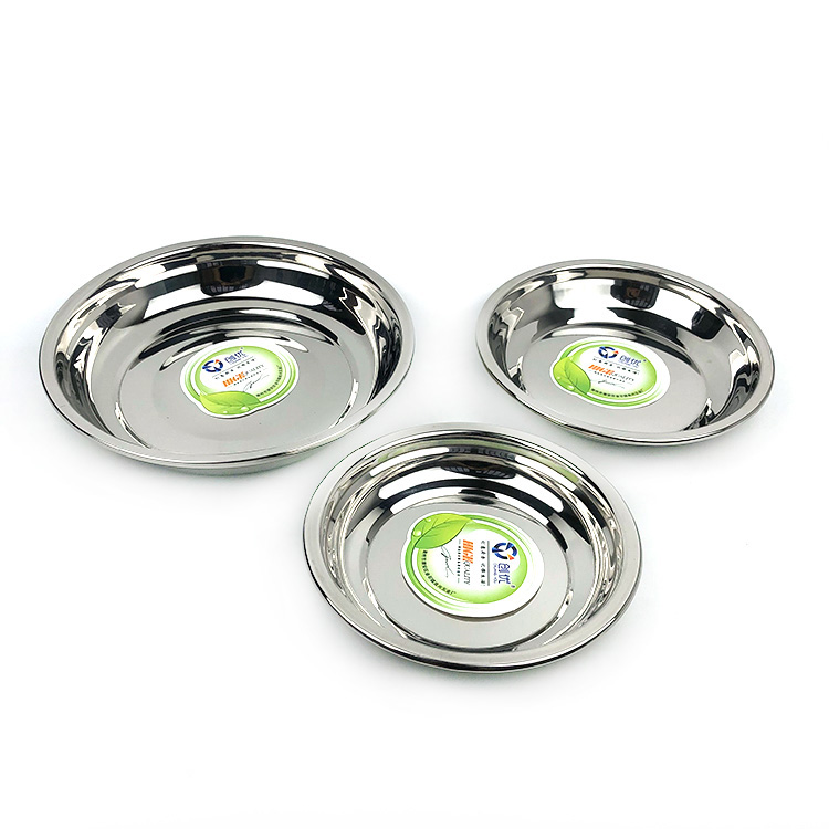 Stainless steel plate, flat plate, household plate, disc, bone plate, barbecue, iron tableware, round dinner plate, dumplings