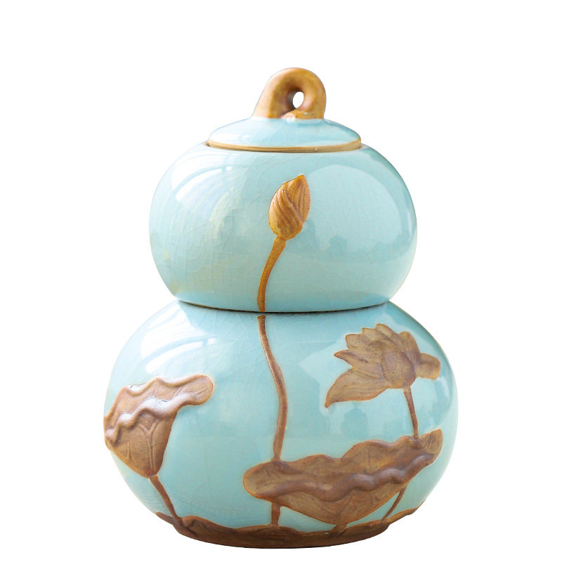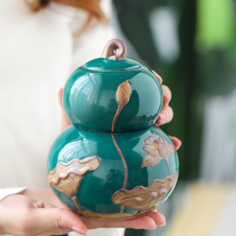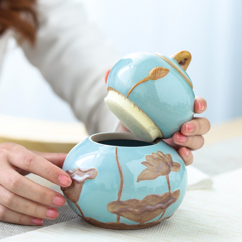 Double layer lotus tea jar - azure double layer lotus tea jar - dark green