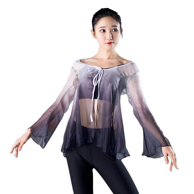 Classical dance training dress female adult gauze dress body rhyme teacher's performance dress nine horn sleeve gradually layer color coat elegant