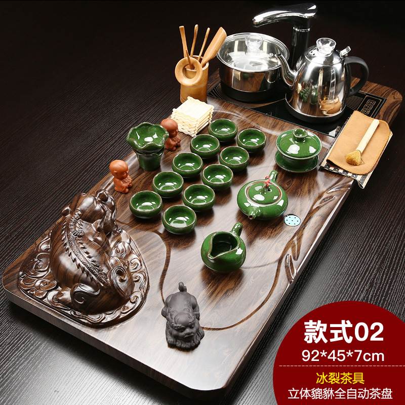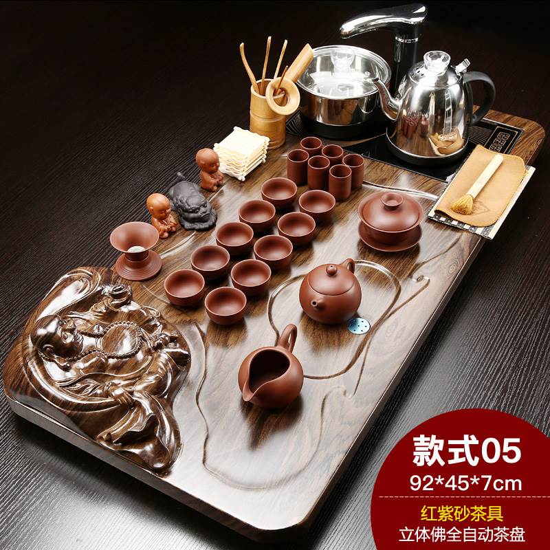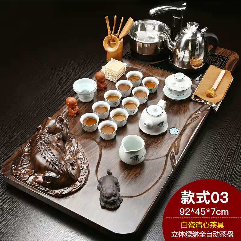 Fully automatic simple household kung fu tea tray tea table tea sea water induction cooker solid wood tea set large one