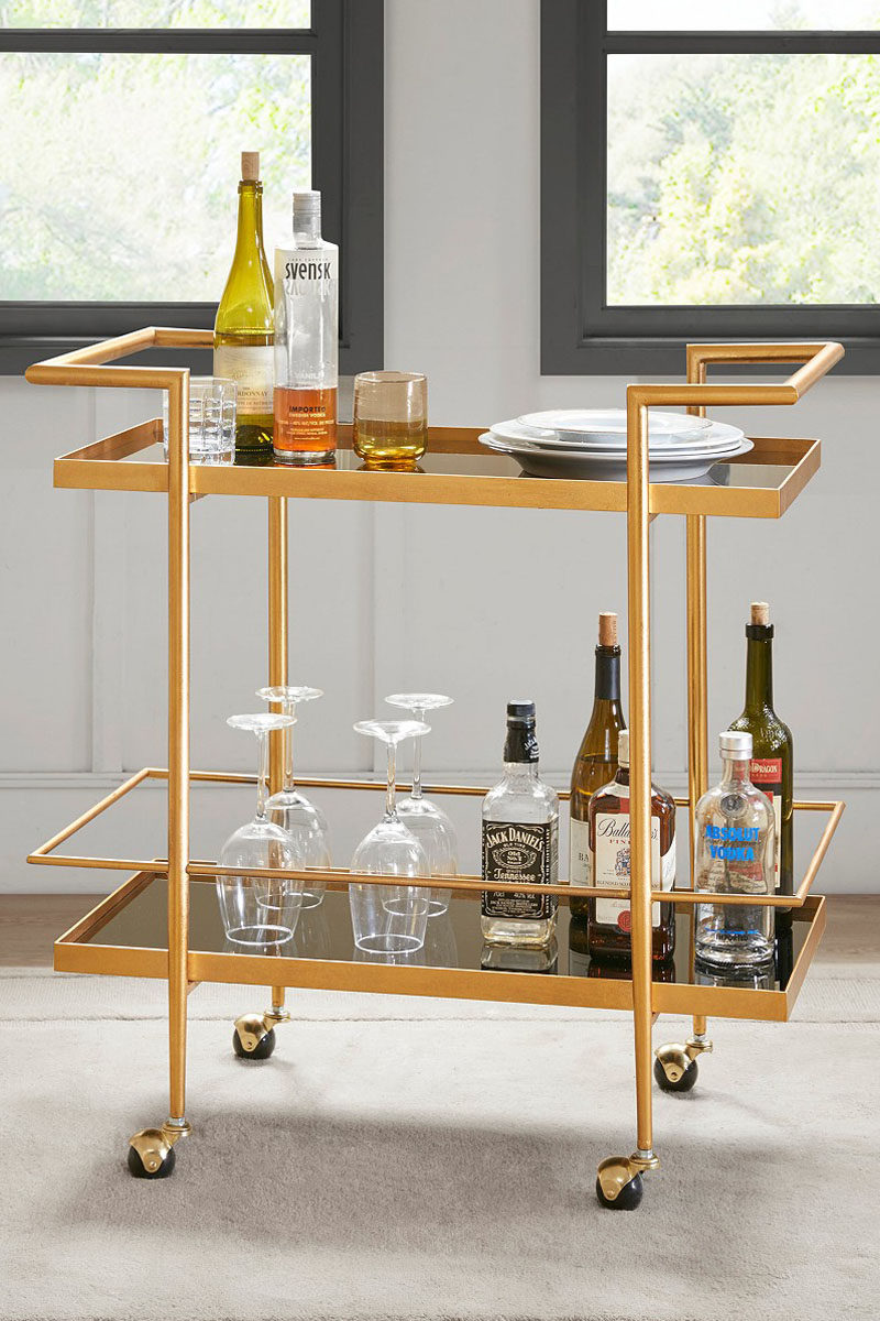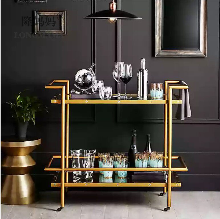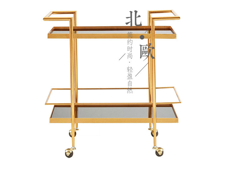 Nordic golden wrought iron dining car two-layer red wine beverage storage rack metal storage hot pot restaurant mobile cart