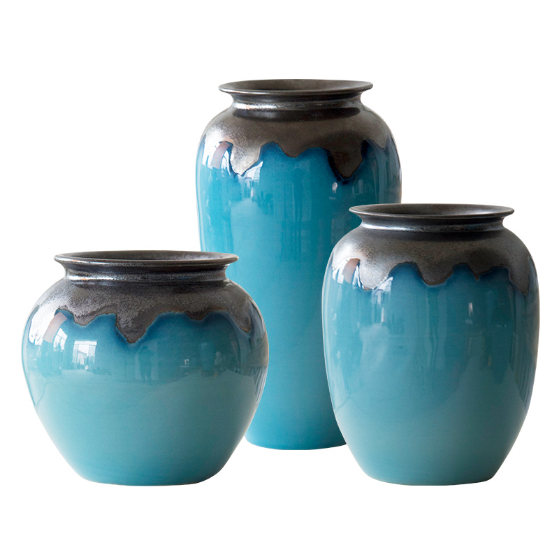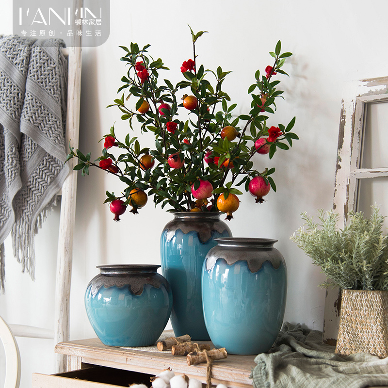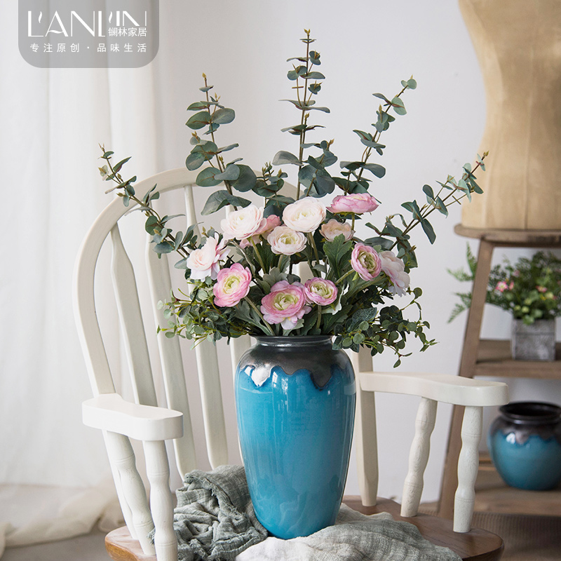 Modern minimalist table surface vase Living room flower arrangement Dry flower floral multi-meat flower pots American retro ceramic Nordic pendulum pieces