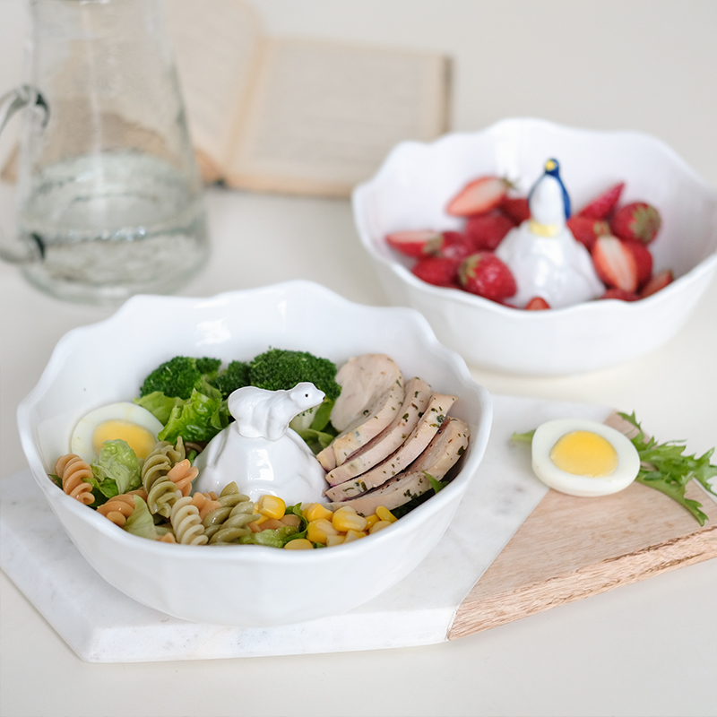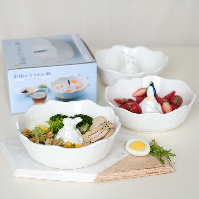 Japan Imported Salafruit White Ceramic Soup Bowl Cute Animal Penguin Polar Bear Bowl Bubbling Noodles Bowl