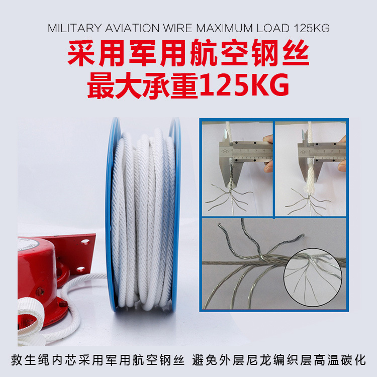 Simple 20m barreled escape rope 10m (0-3 floors) 15M (2-4 floors) 20M (4-6 floors) 25M (5-8 floors) 30M (7-9 floors)