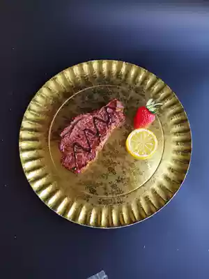 Hot sale disposable gold paper plate yellow aluminum foil paper tray turkey leg lamb chop cow head banquet Special