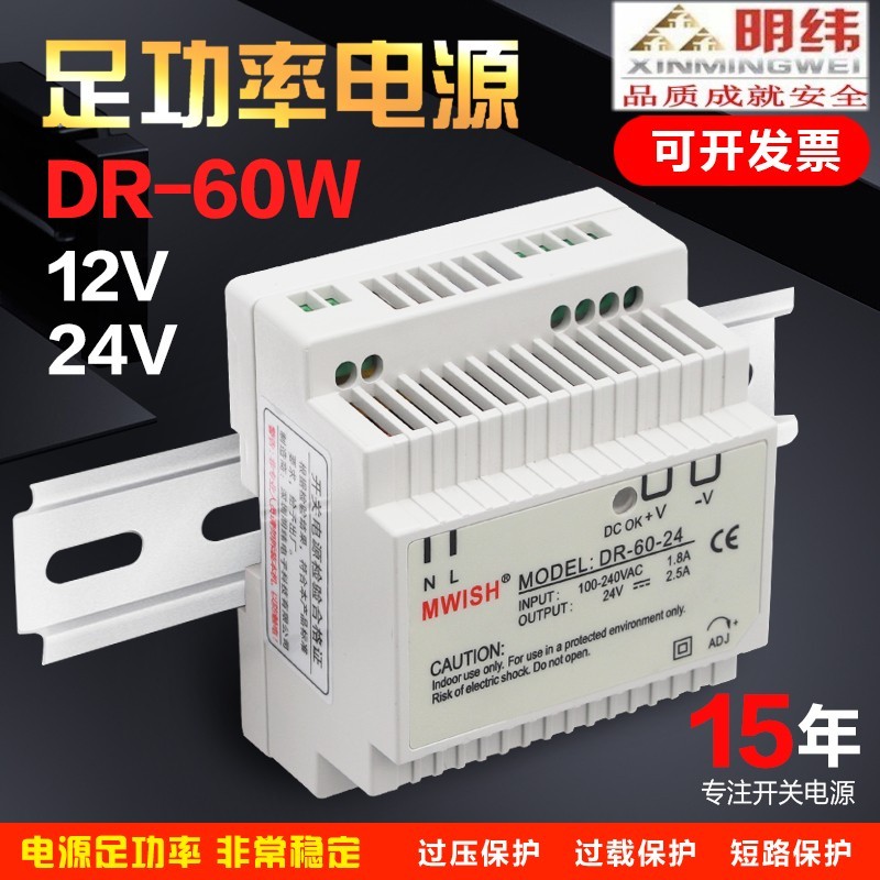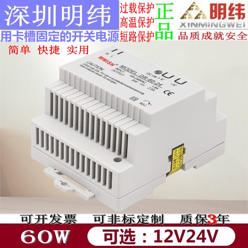 Shenzhen Mingwei DR-60-24 Industrial Level Card Rail-type DC LED switching power supply DC24V2 5A 12v5a-Taobao