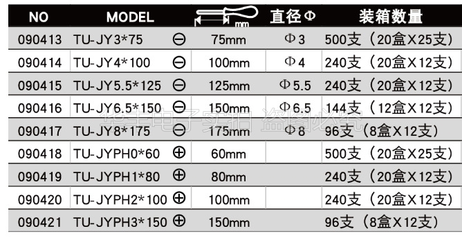 TU-JY3 * 75-TU-JY4 * 100-TU-JY5 5 * 125-TU-JY6 5 * 150-TU-JY8 * 175 -T