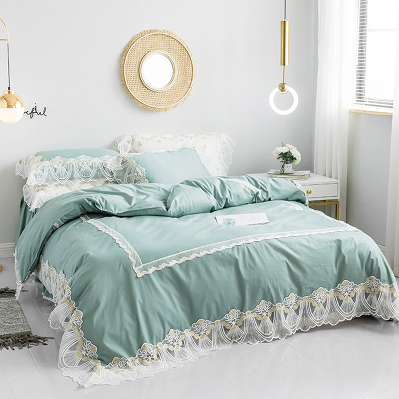 Eurostyle all-cotton pure cotton 100 four pieces of upscale lace male main wind girl quilt cover 1 8m net red bed bedding 4