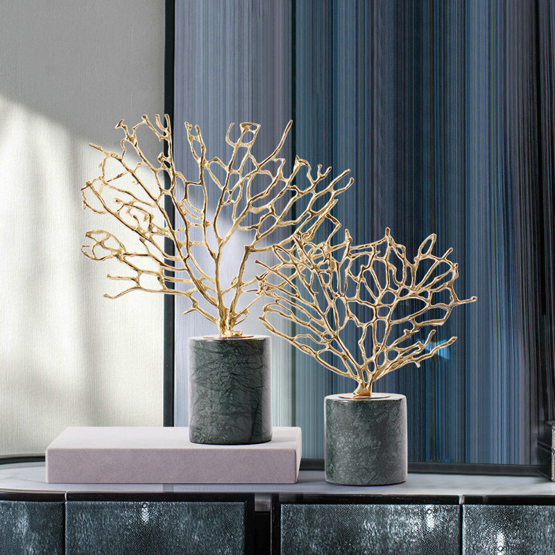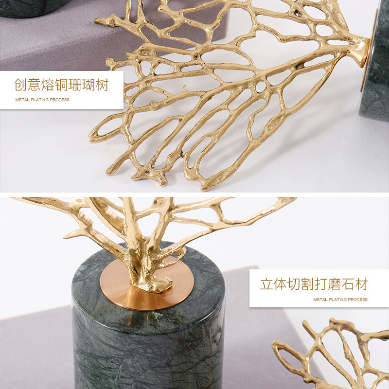 Modern New Chinese Style Style Board Room Swing Piece Villa Marble Bronze Coral Furnishing Hotel Living-room Compartment Genguan Soft Dress