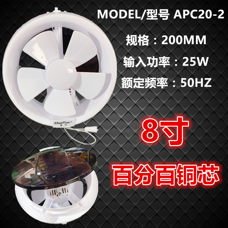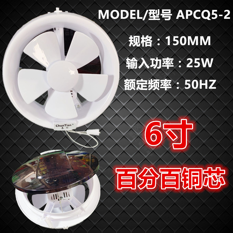 Spring field 6-inch ventilator round window style change exhaust fan round glass exhaust fan 8 inch Makeup Room Kitchen