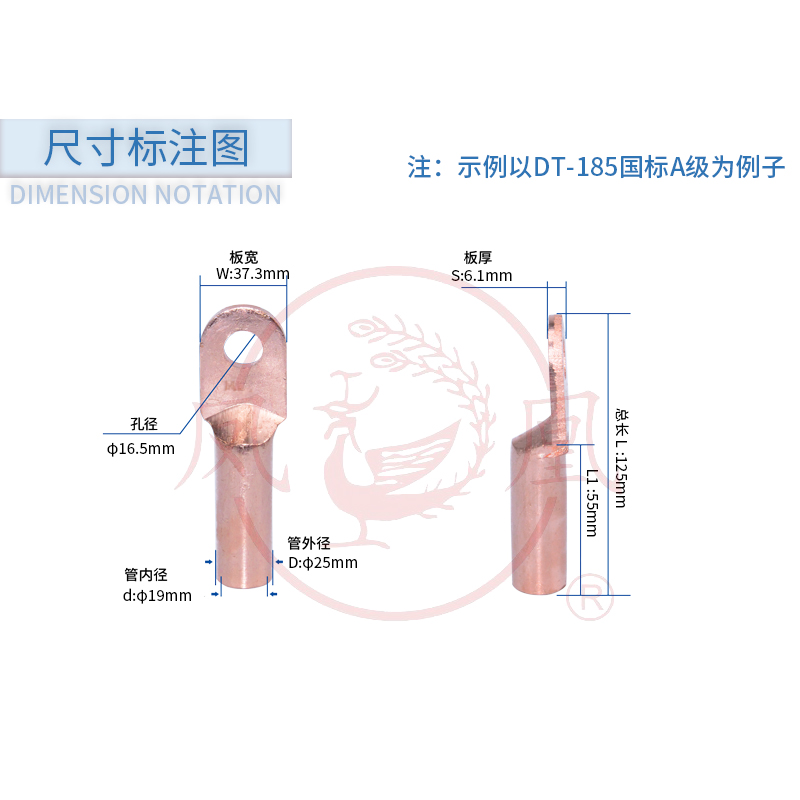 Phoenix block oil copper terminal DT-10 185 240 300 400 500 630 square national standard A-class copper wire nose