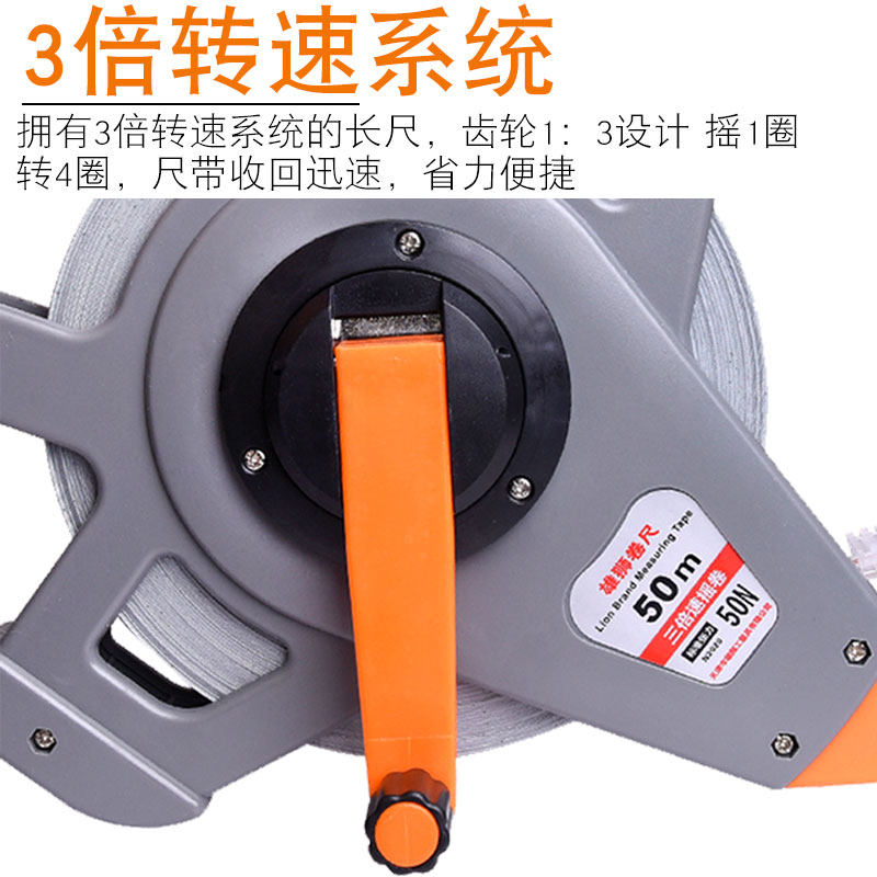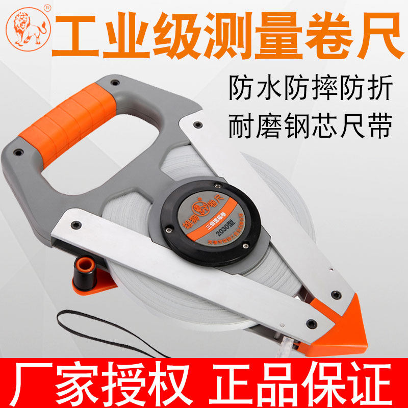 Lion steel coil ruler 50 meters stainless steel long ruler 30 meters 100 meters high-precision measurement Nylon waterproof wear-resistant tape ruler