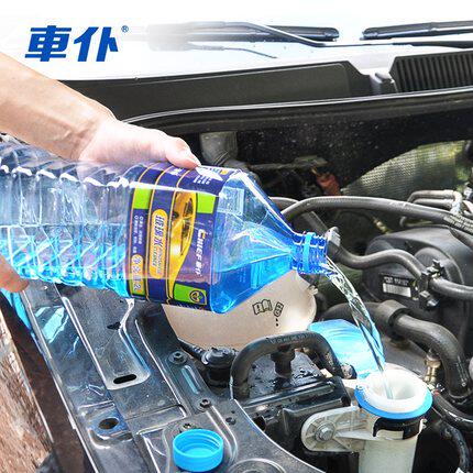Front wind windscreen wiper cleans cleaning liquid agent glass water vapor car winter carwash trolley blue decontamination