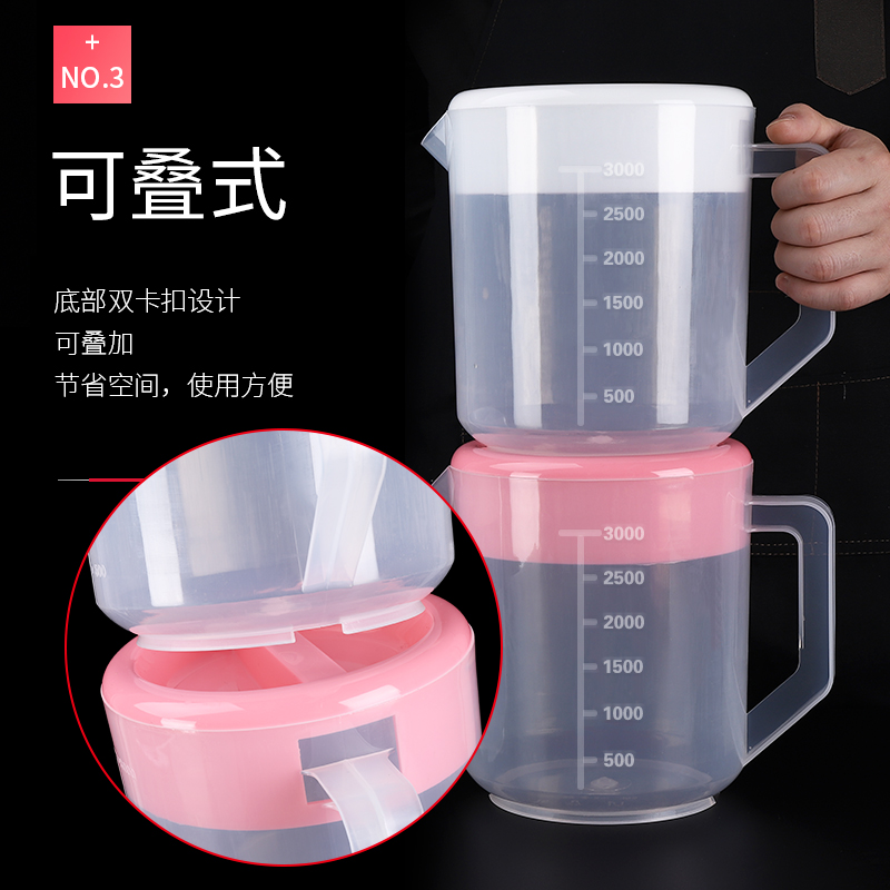 Plastic with lid cold water pot Stacked High Temperature Resistant heat resistant with scale Large capacity cold water jug Milk Tea Shop Exclusive