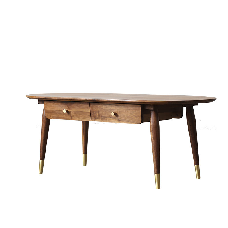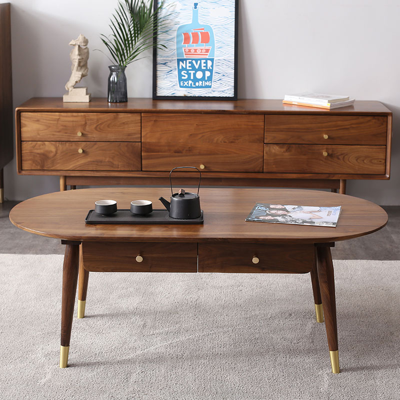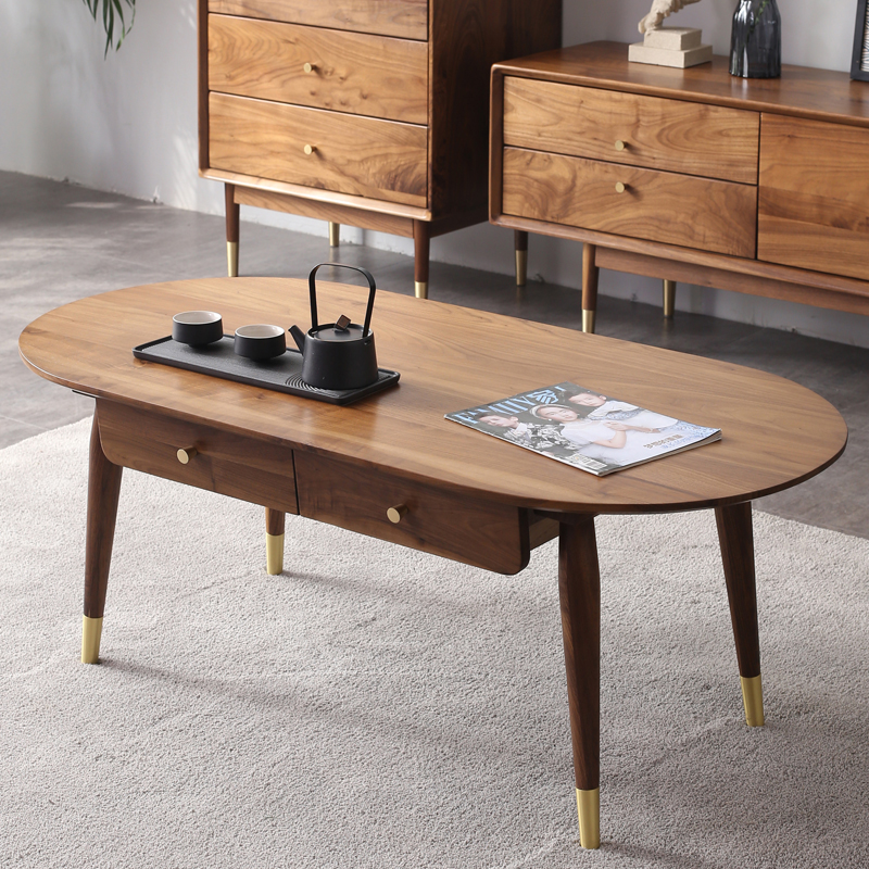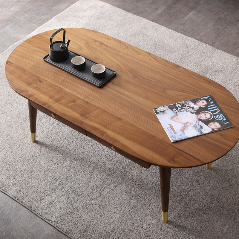 Three ears Nordic solid wood coffee table black walnut oval modern Japanese small living room capsule coffee table