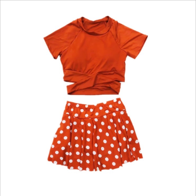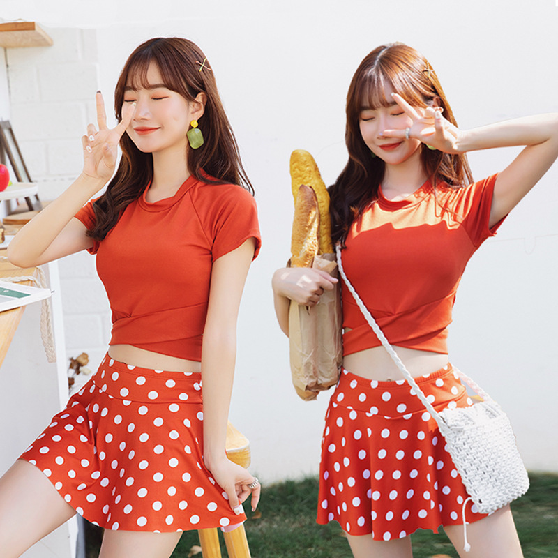 2020 new swimsuit woman two-piece two sets Korean version student conservative small scent wind display slim flat corner skirt spa beach