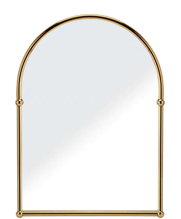Gold dressing room copper frame mirror English wall hanging bathroom mirror washing table mirror silver semi-oval makeup mirror arch