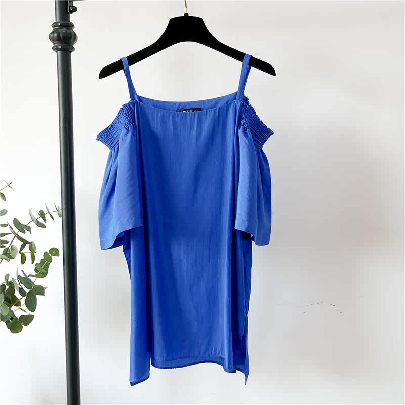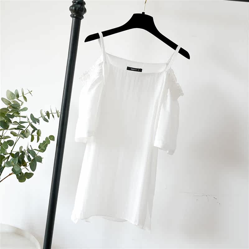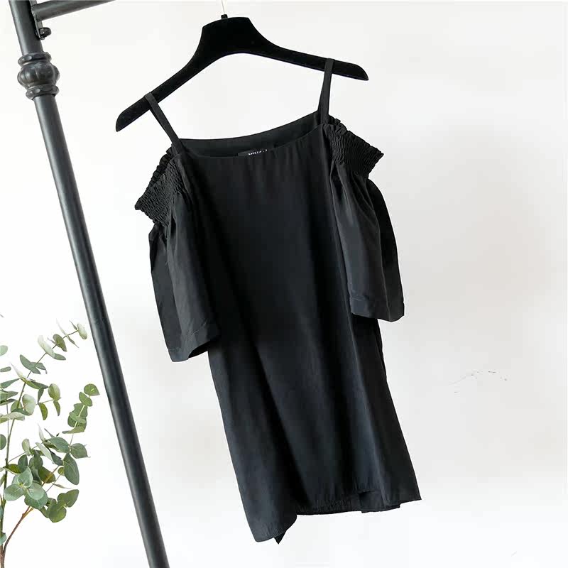 Seven Girls MEETC Z Careful Machine Versatile Ice Silk Sling One-word Collar Off-the-Shoulder Doll Sleeve Women's Top 3762