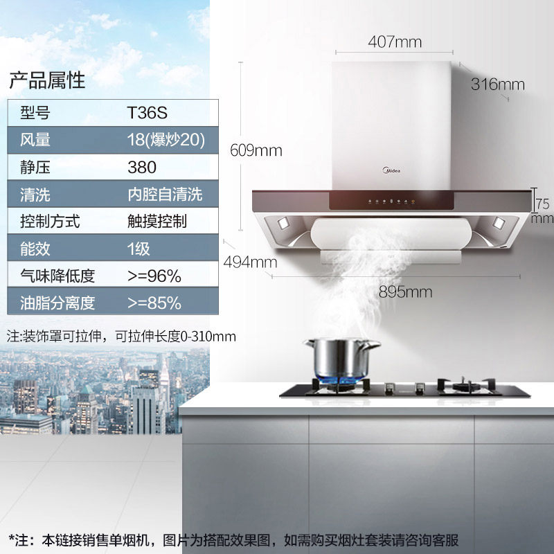 Midea T36S range hood gas stove package top smoking machine stove kitchen smart home appliance smoke stove set