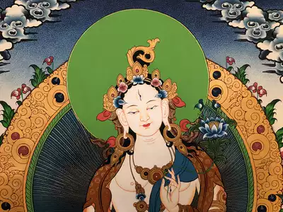 White Mother Nepal pure hand-painted boutique Thangca painting porch decorative painting hanging painting Tibetan Buddhist statue 70*51