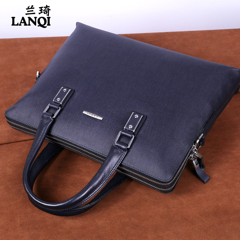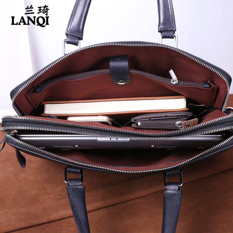 Lanqi Men's Business Bag Business One Shoulder Messenger Bag Trendy Brand New Fashion Leather Bag Trendy Briefcase Men's Computer Bag