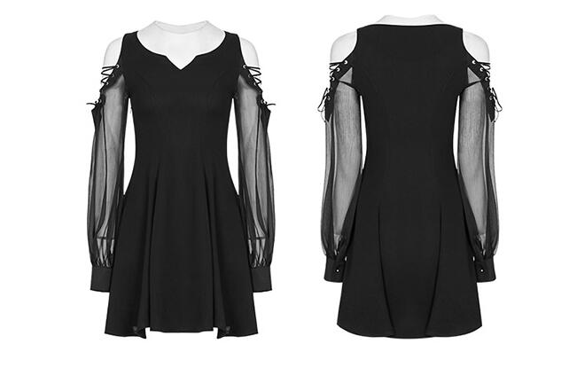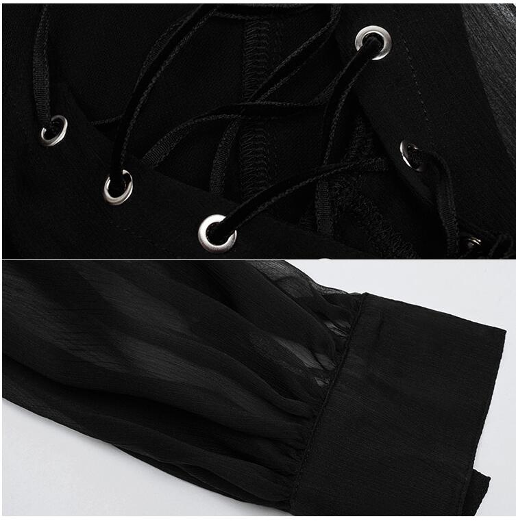 Spot off-the-shoulder V-neck dress women's summer new punk slim lantern sleeve strap stitching chiffon skirt