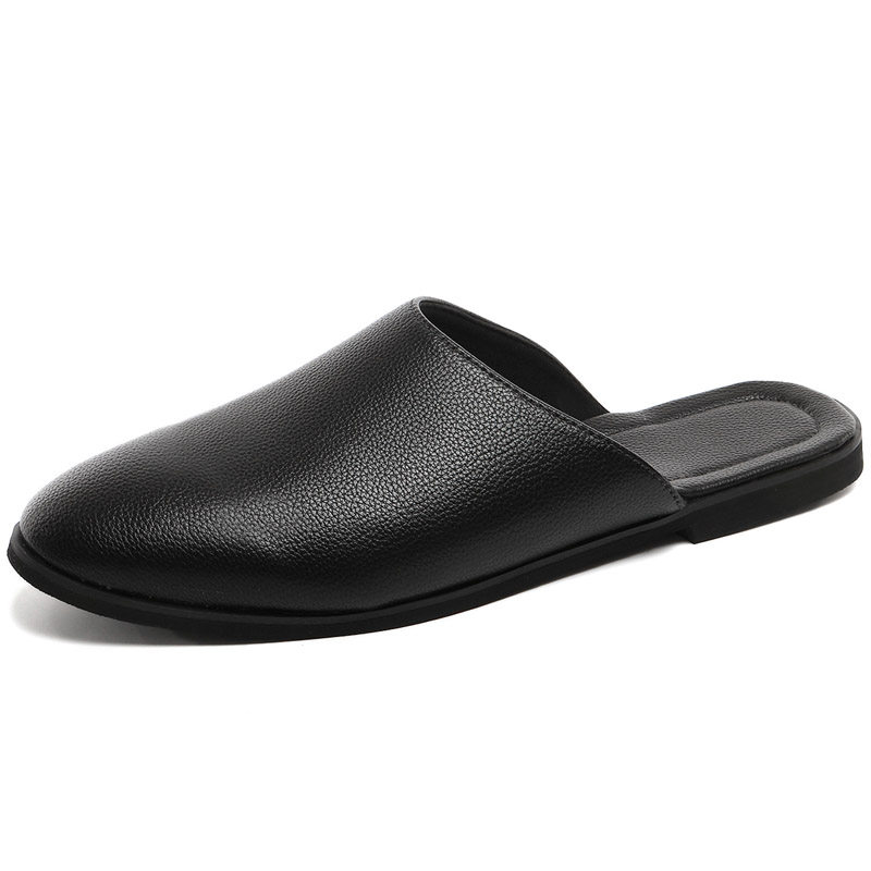 Semi-slipper male summer Baotou No heel fitting shoes casual cool tug Rome sandals Pointed Leather Shoes Man Bean shoes