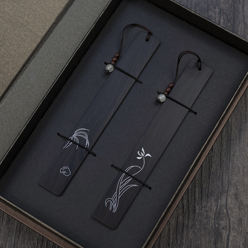 Chinese style black sandalwood inlaid with silver silk shell orchid single pair gift box classical famous flower Clivia reading gift