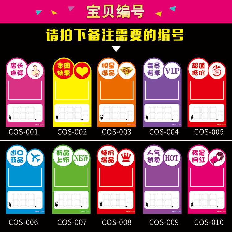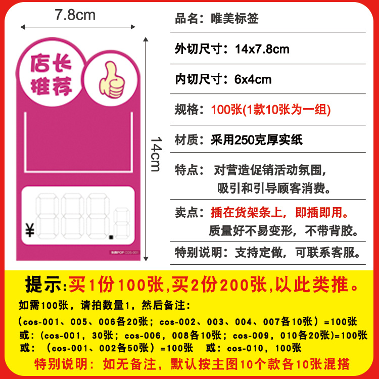 100 beautiful labels, price tags, card holders, supermarket beauty store shelves, channel cards, promotional cards, card holders