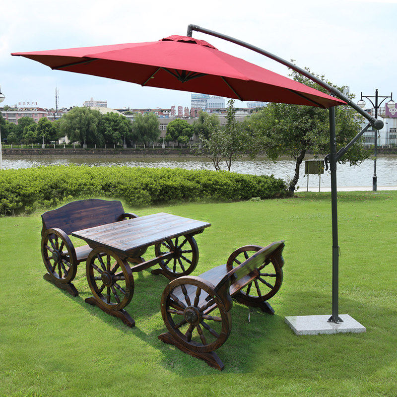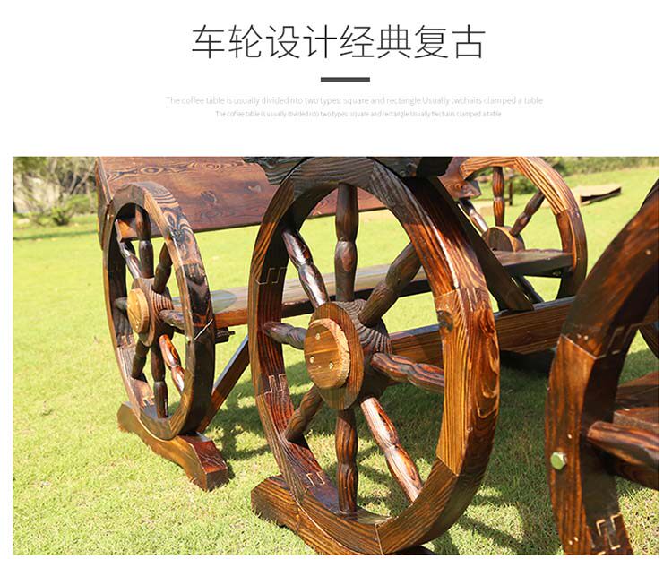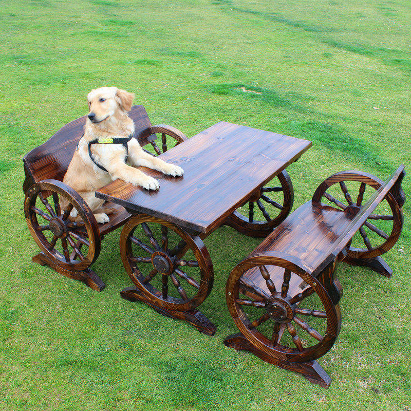 Outdoor carbonized solid wood anti-corrosion three-piece villa open-air balcony bar leisure courtyard wheel dining table and chairs moisture-proof