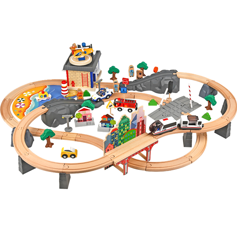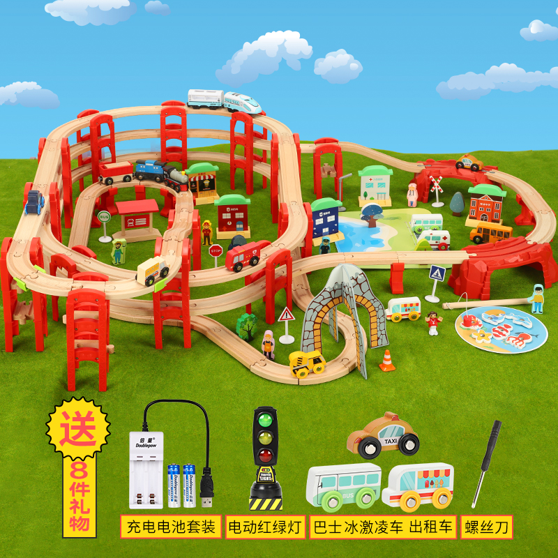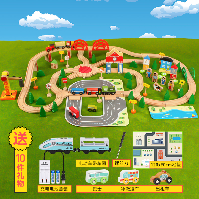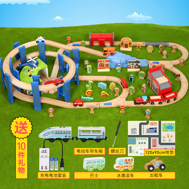 Wooden Electric Train Track Suit Toy Children Puzzle Assembled Building Blocks Wooden Railcar Toy Men 2 years old