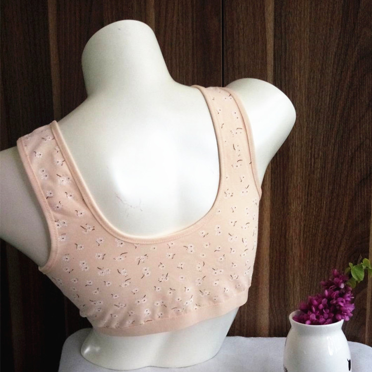 Middle-aged bra mother underwear before opening steel-free ring printed thin cotton cloth large size vest type mom bra