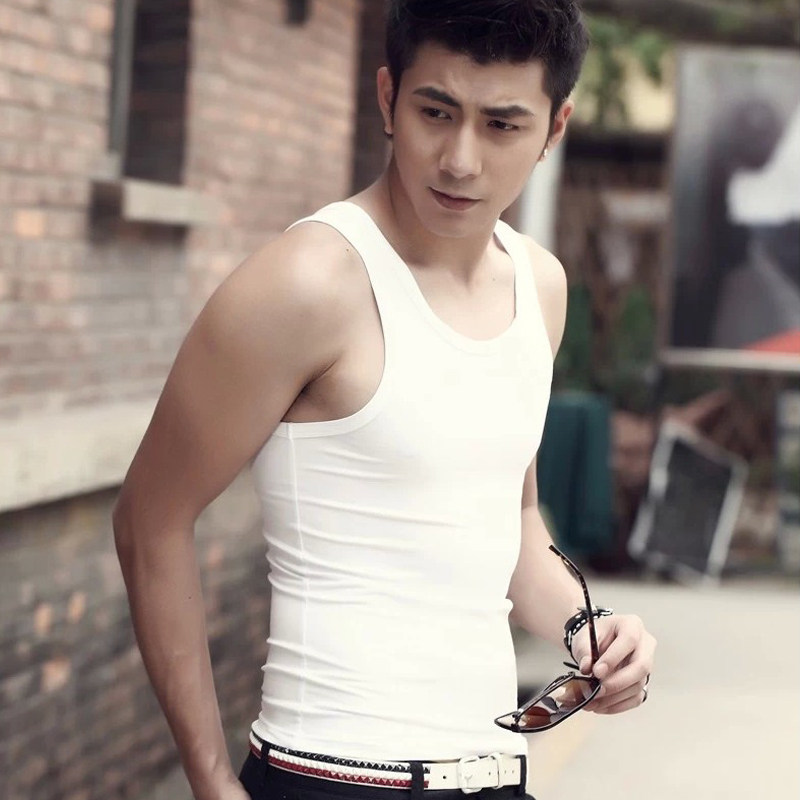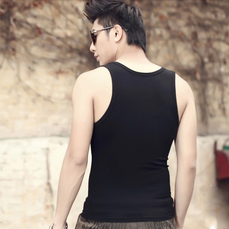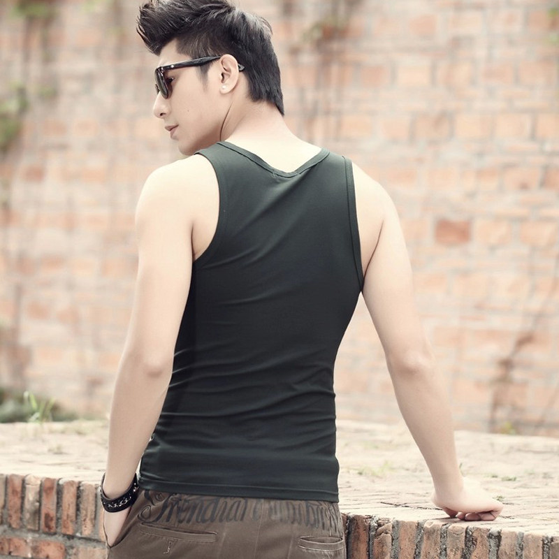 Vest basic style to wear heavy summer elastic sleeveless T-shirt men's tight sports fitness undershirt solid color vest