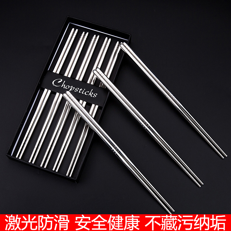 Stainless Steel Chopsticks 304 Home Anti-slip and anti-damp and anti-scalding high-end tableware chopstick Family quick son 10 Double suit