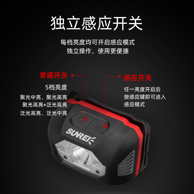 Mountain Lux strong light induction headlamp super bright off-road camping hiking mountaineering rechargeable head-mounted outdoor headlamp waterproof