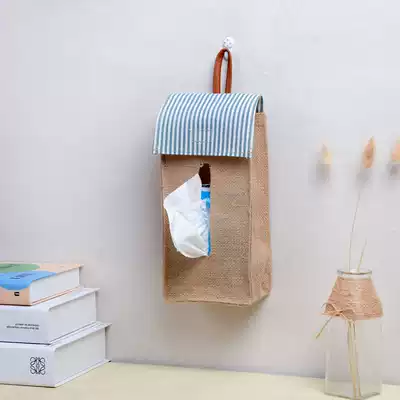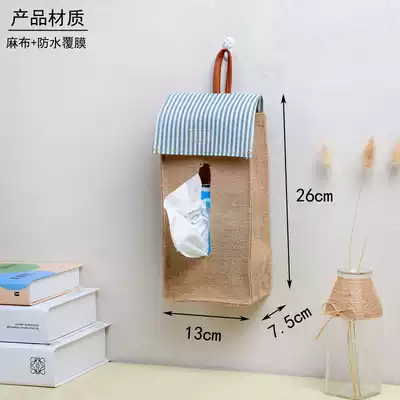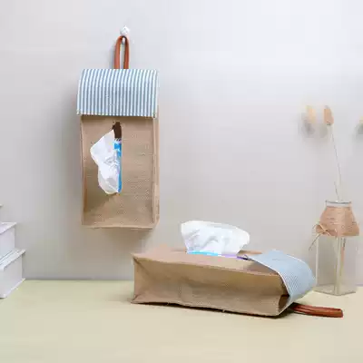 Retro cotton and linen cloth tissue box wall-mounted bag removable toilet paper box Car home napkin box decorative wall-mounted moisture-proof