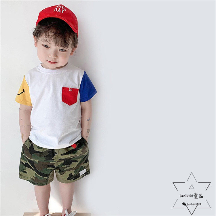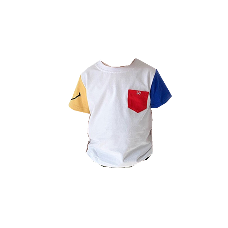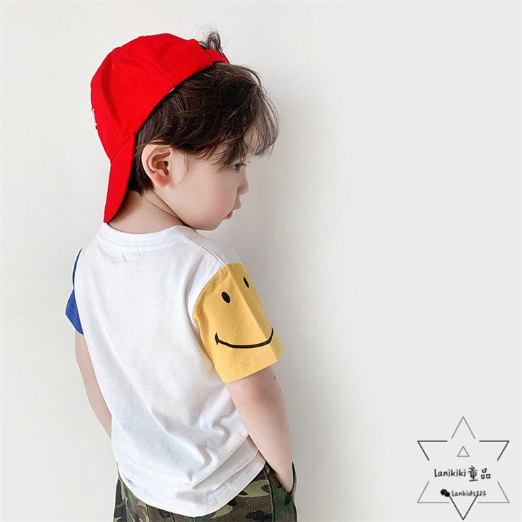 (Leftover 80 yards) Summer new men and women Fairy Collage Striped Smiley Face Short Sleeve Minimalist Color Pure Cotton T-shirt Spot