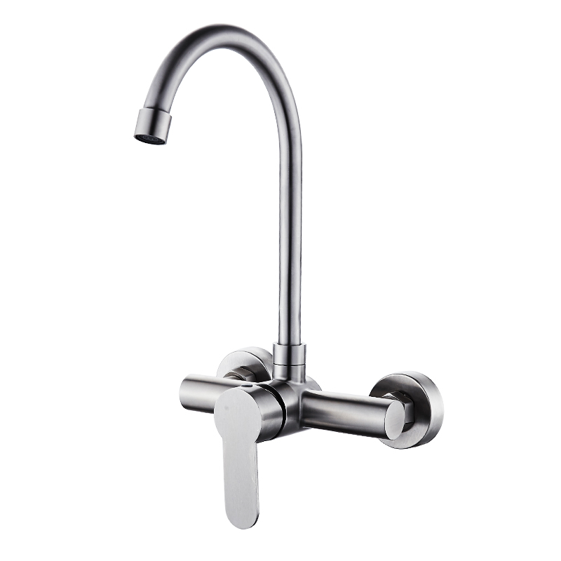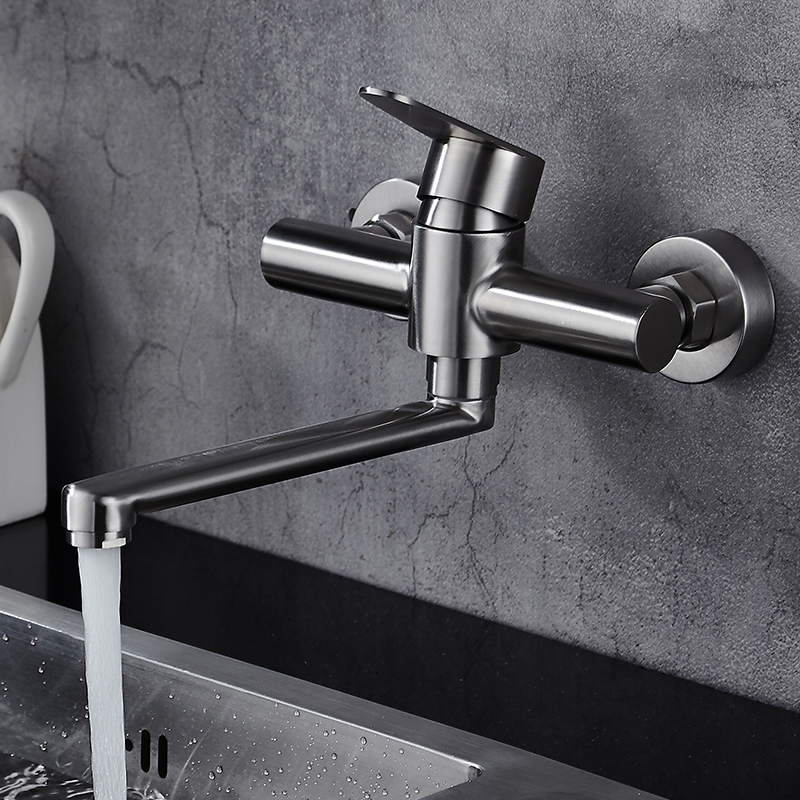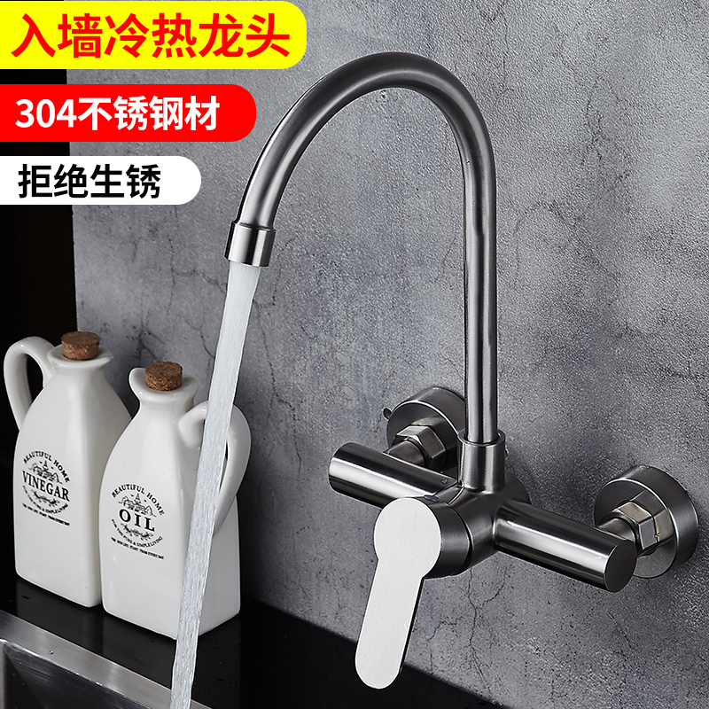 Kitchen in-wall faucet Hot and cold 304 stainless steel sink washing basin double hole hanging wall washing pool faucet