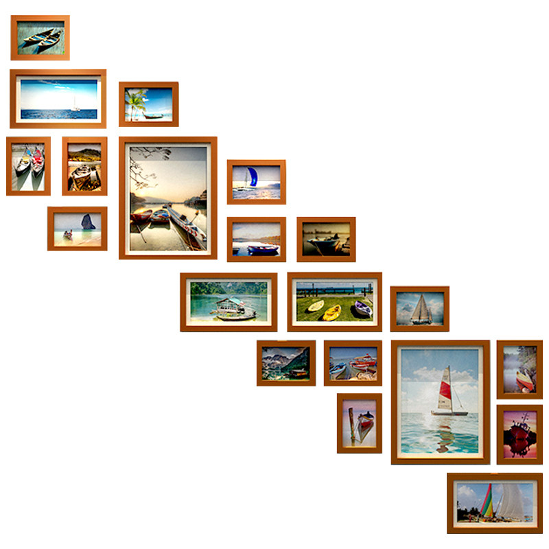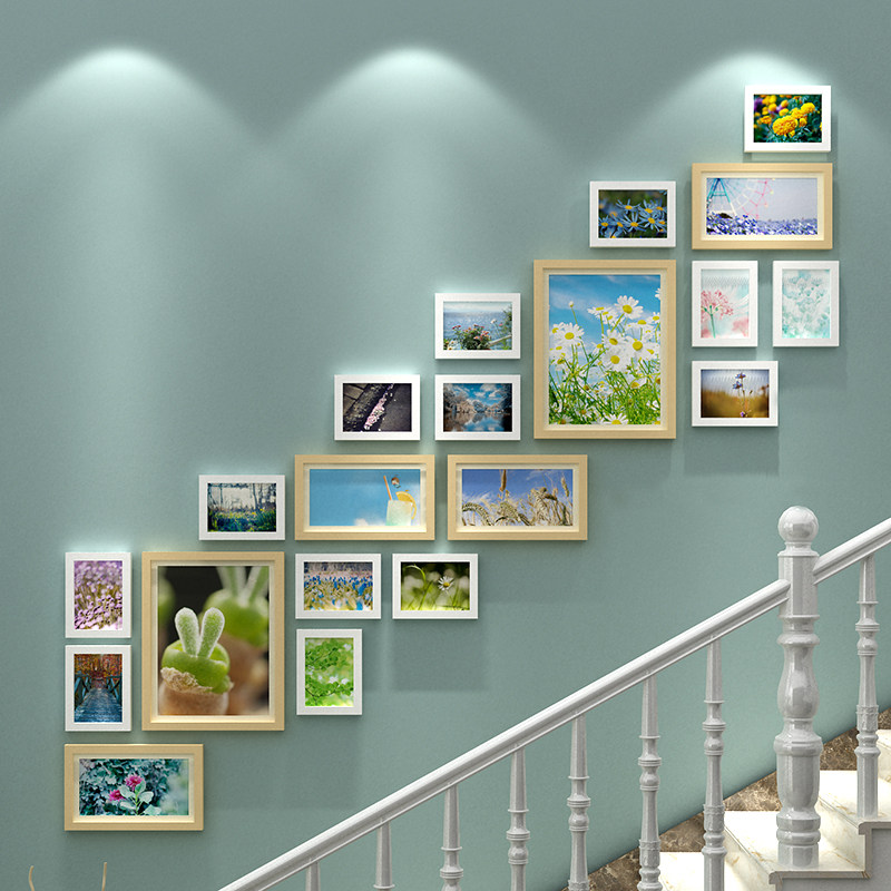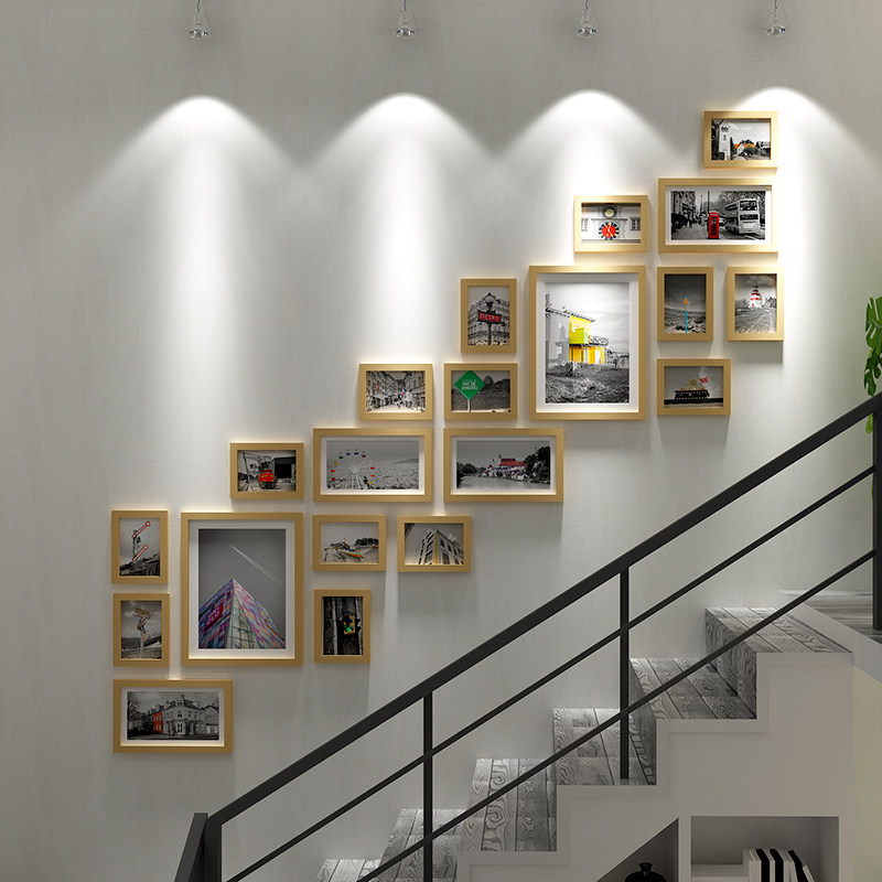 Creative solid wood staircase photo wall modern photo frame wall combined upper corridor background wall decoration wall