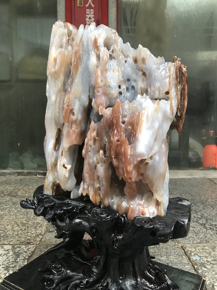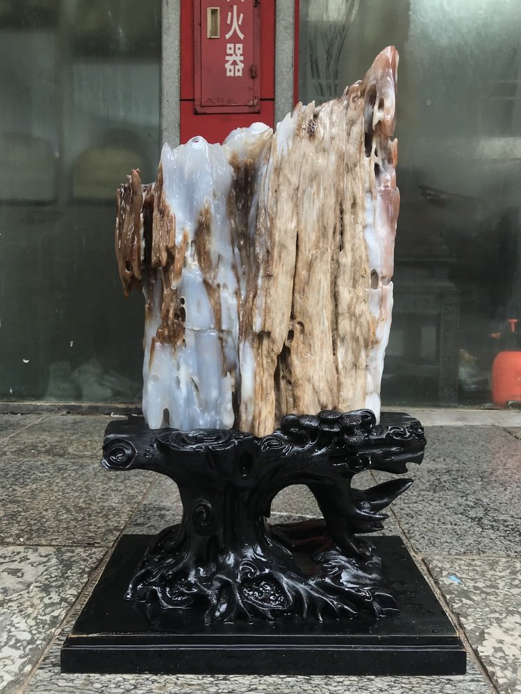 Myanmar tree-shaped jade pendulum piece ice-type hollowed-out wood fossil silicalized wood natural raw stone ornamental living room swing piece 544
