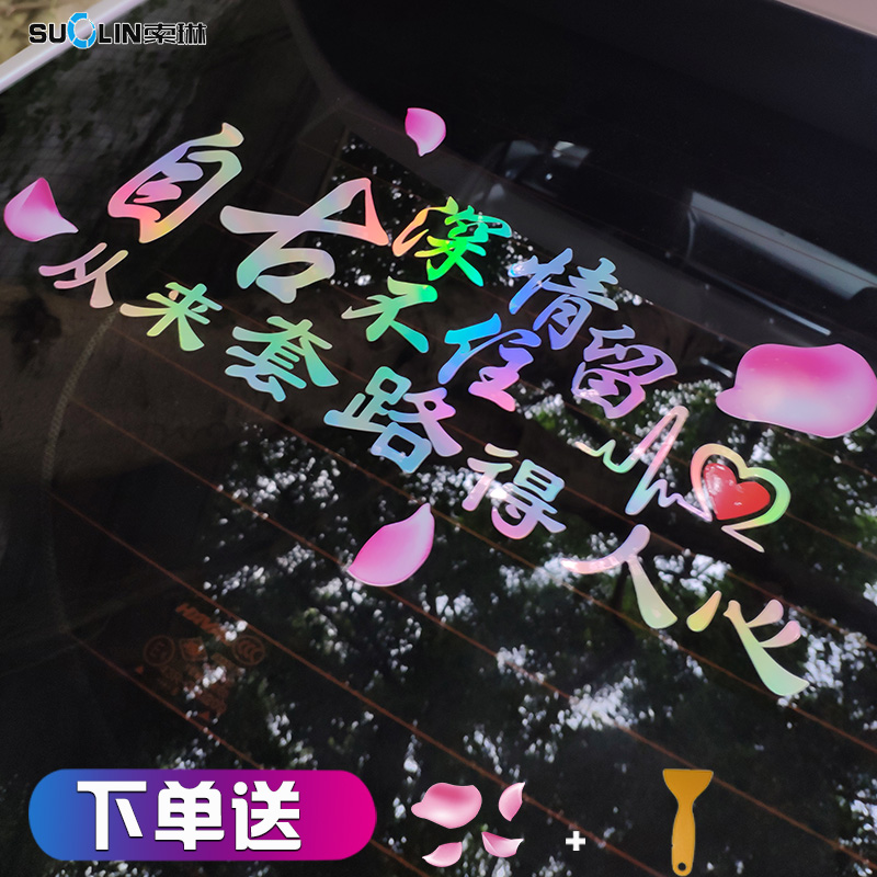 Net red car stickers Car tail inspirational creative funny decoration car rear glass text personality colorful reflective patch paper