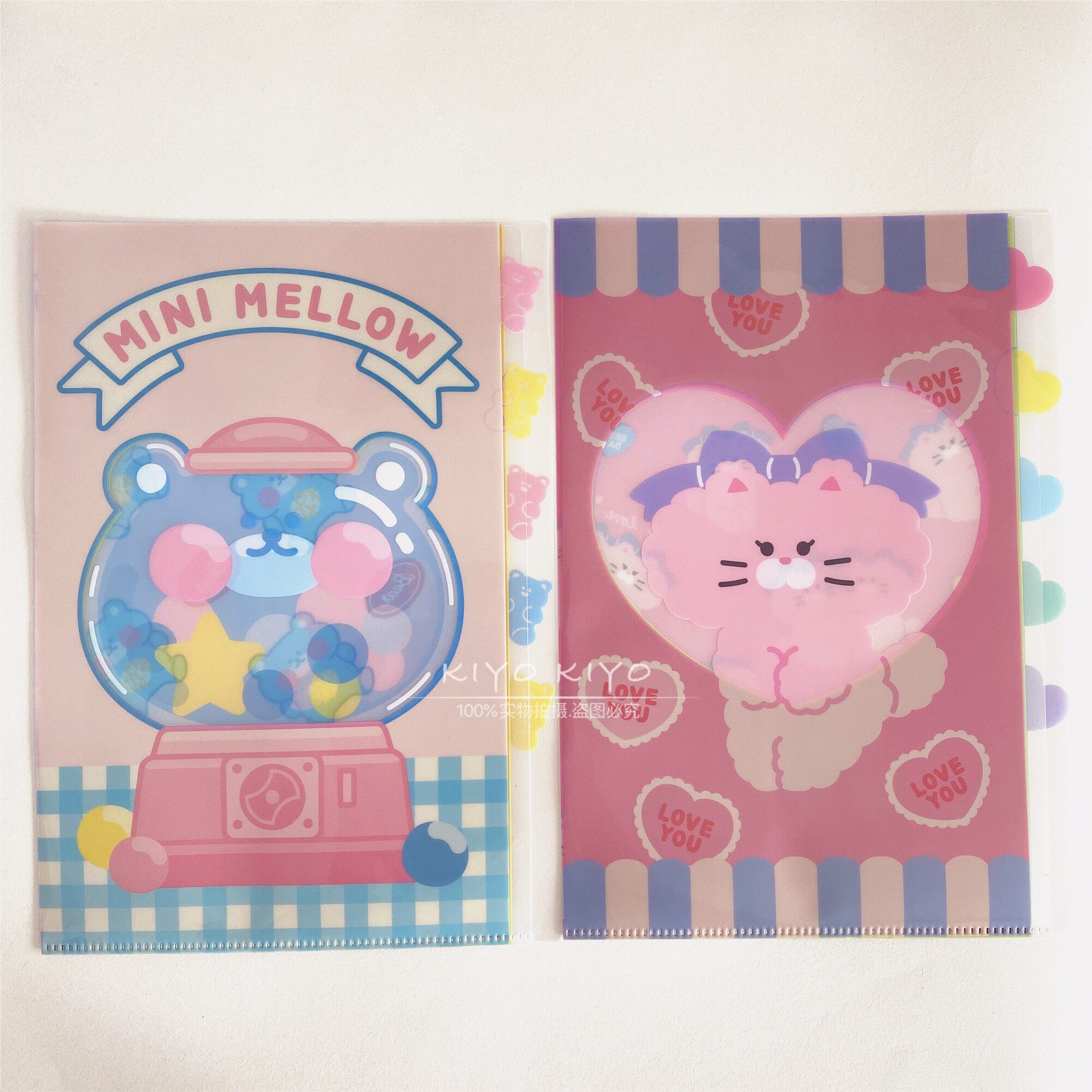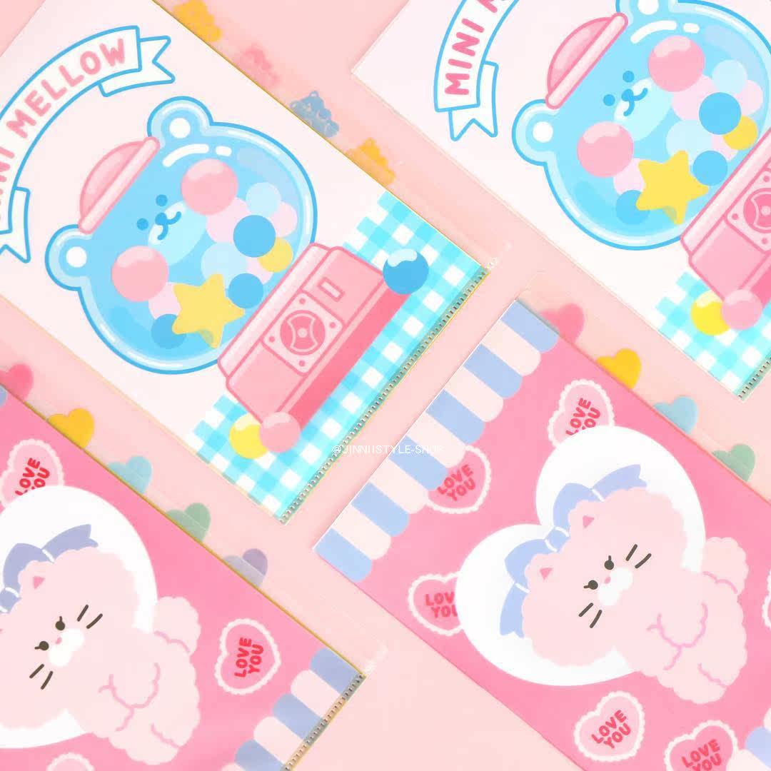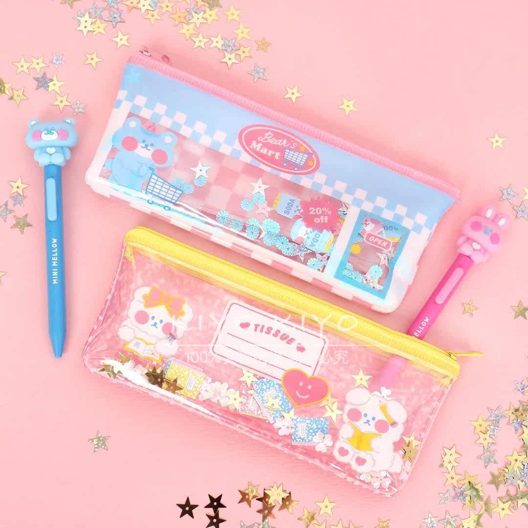 4 pieces of Villa Korea Great Innovation Minimellow Pink Cat Cat Blue Bear Pvc Streaming Sand Pen Bag Folder Stationery